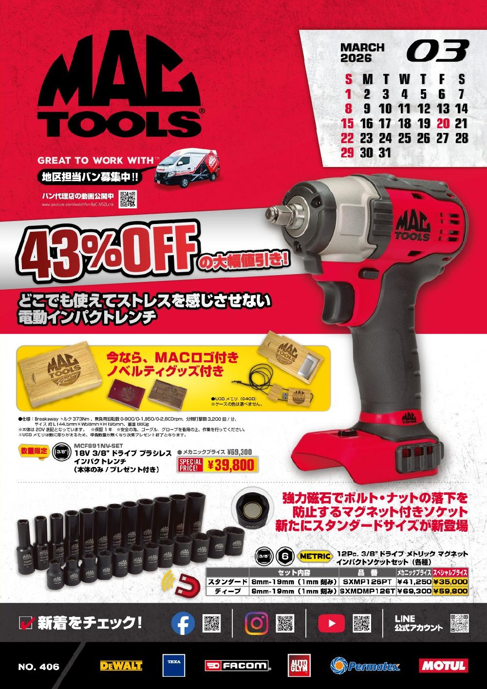 フライヤーに掲載の特別価格は、Mac Tools地区代理店からのみ、購入可能な特別価格です。